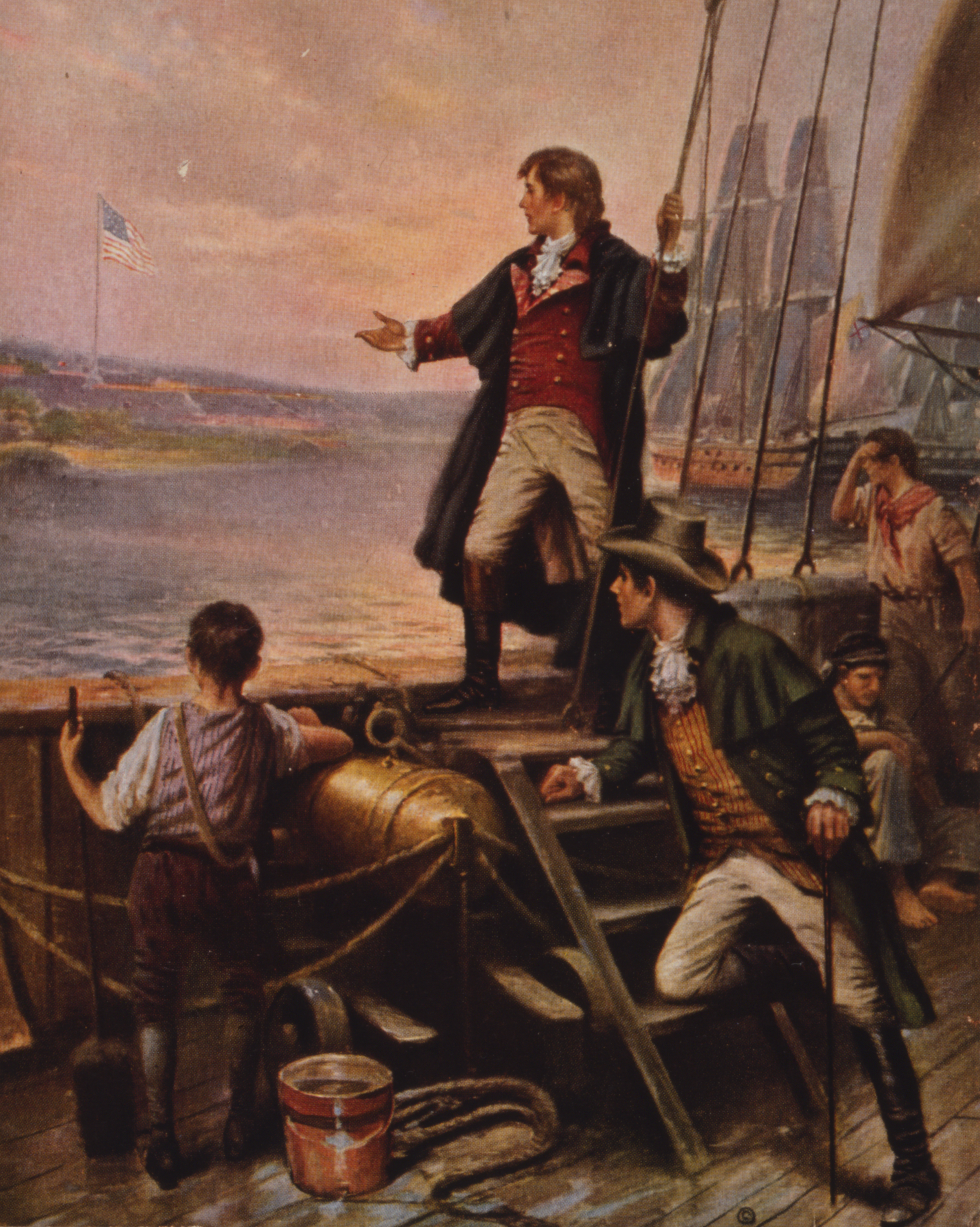 Francis Scott Key penned the words to what became the national anthem during the War of 1812 as he watched “the rockets’ red glare,” British-launched missiles that resembled giant bottle rockets filled with gunpowder, tar, and shrapnel. The “bombs bursting in air” Key witnessed referred to the 200-pound cannonballs the British fired from their ships at the Americans inside Ft. McHenry.
